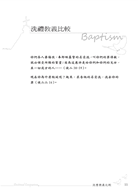 本書所詮釋的教義共計五個單元,即洗禮教義比較、洗腳禮教義比較、聖餐禮教義比較、聖日教義比較、聖靈教義比較。這些教義就是本會一百年來所堅持的五大教義,也是由本會的老前輩傳授給我們的信仰遺產,極其珍貴。