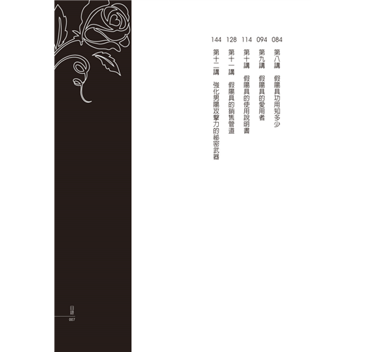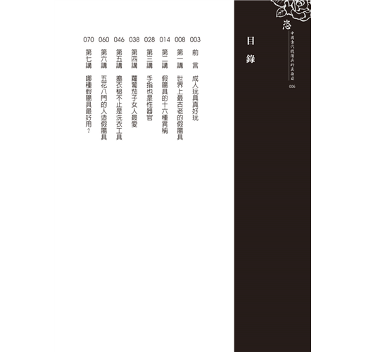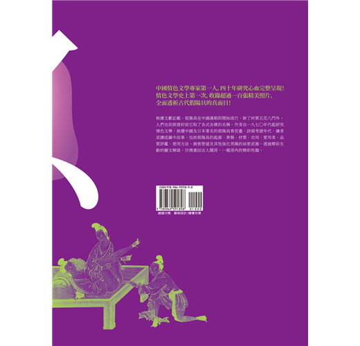 根據文獻記載,假陽具在中國漢朝即開始流行,除了材質五花八門外,人們也依照喜好給它取了各式各樣的名稱。作者自一九七○年代起研究情色文學,挑選中國及日本著名的假陽具春宮畫,詳細考證年代、繪者並講述圖中故事,包括假陽具的起源、異稱、材質、功用、愛用者、品質評鑑、使用方法、銷售管道及其他強化男陽的祕密武器。透過精彩生動的圖文解說,彷彿重回古人閨房,一窺房內的精彩性趣。