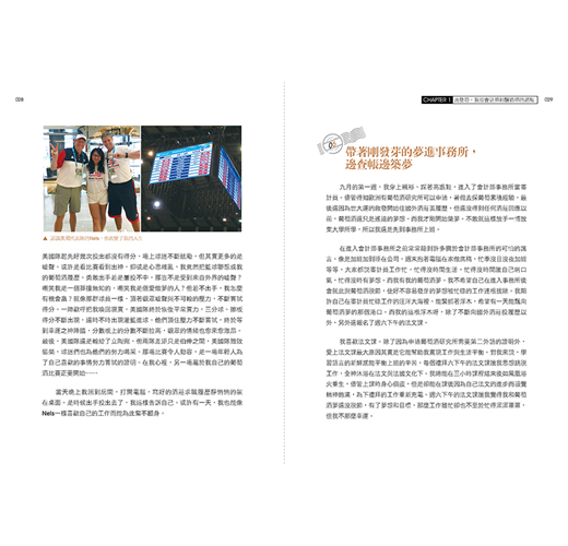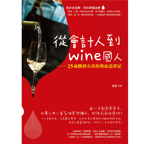 在台灣傳統升學體制下長大的我,從小學到大學都是標準乖乖牌,求學過程中一直都是「第一志願」,也因此成為旁人羨慕的對象。我活在虛幻的掌聲中,只喜歡別人的稱讚而從未踏實的想過自己真正喜歡什麼。大學畢業後,我意外發現自己對葡萄酒的喜好而決心撕掉所有好學校、好公司標籤,辭掉會計師工作出國學酒,為自己的葡萄酒夢努力一回。