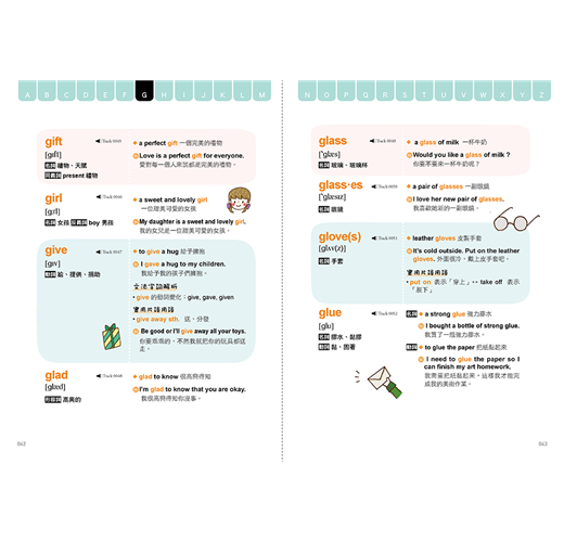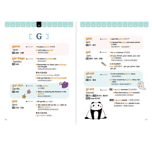 本書為了讓父母學英文時可以輕鬆上手,屏除了一開始就列出落落長句子的編排,並在每個詞性後面,先列出簡單的片語,再補充延伸例句,利用階梯式的呈現,讓吸收度大幅提升。除此之外,在關鍵處也會補充同反義詞、進階片語、文法解析、以及例句補充等等,全面擴大親子在共學單字時可以學習與互動的面向,讓單字不再是只能透過背誦來學習,父母親和小孩一起學英文應該要超自然不費力!