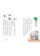 *學注音:每篇故事為一個注音符號的學習單元,故事中用色字標出所學相關注音的單字或語詞,採直接拼讀法的練習,讓孩子看到注音後直接念出字音。