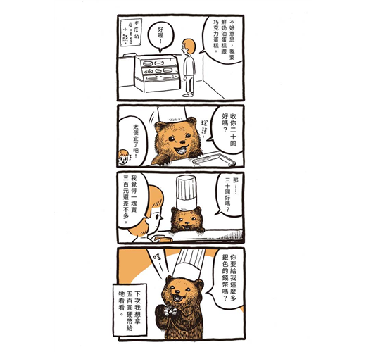 小熊店長只會做蛋糕,其他什麼都不懂,好在有店員先生在一旁靜靜守候,