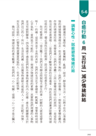 書中介紹了呼吸法、簡易氣功、靜坐、食療……等7項自癒行動,並提供貼心小叮嚀,幫助你快速掌握重點、立即行動!像是只要大口吐氣,就能活化肺機能,又能排放積壓的情緒;能放鬆身體,同時也能運動到腕肘肩頸胸腰髖膝踝等9大關節的能量無蹈;根據自己體質吃對食物的頂營食療。