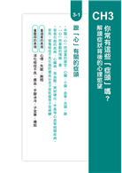 本書提供準確的自我檢測,只要依據身體症狀,循序找出對應的「五臟系統」與「內心的失衡情緒」,例如: