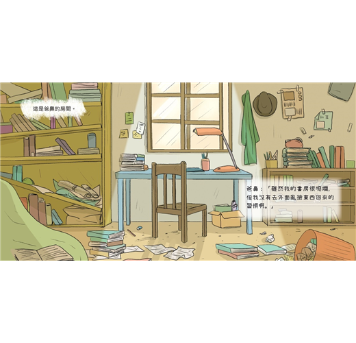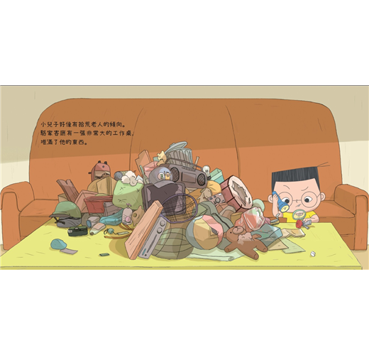 小兒子有個特別的癖好,就是愛亂撿東西回家,駱家客廳的大工作桌,總是堆滿他帶回來的昆蟲箱、零食袋、爛皮球、壞書包等雜物。愛乾淨的媽咪每次費勁收拾乾淨,隔天又會被像土石流的垃圾堆嚇到,這時受到牽連的通常是無辜的爸鼻。有天爸鼻終於忍不住檢查小兒子的書包,裡面果真裝滿了各種雜物,他訓斥:「送你去上學,你卻去拾荒!」結果小兒子的回答,讓爸鼻無法反擊。