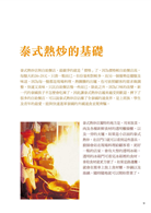 書中詳細介紹處理各式食材的技巧,針對不同食材的烹調細節,還有各式調味醬料的口味與內容物、比例拿捏等。學會這些技術,除了能煮出一份道地的泰式熱炒,還能運用到平日的菜色中,讓你的廚藝在不知不覺中精進了。