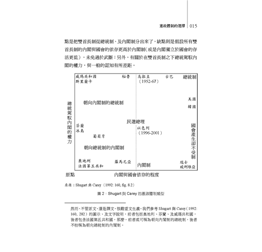 經過數十年的研究及爭辯,學者對於總統制及內閣制的優劣,也就是憲政體制是否影響民主存續,迄今依然沒有共識。有學者主張應該去探討的是到底問題出在憲政體制本身內在、固有的特色,還是外在的條件不足,譬如起碼的國民所得、國家大小、或是地理位置等。