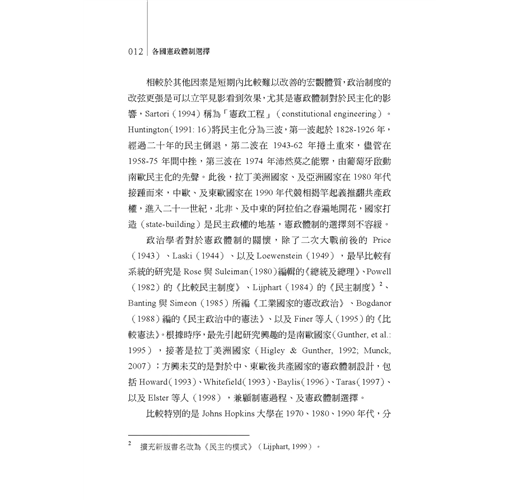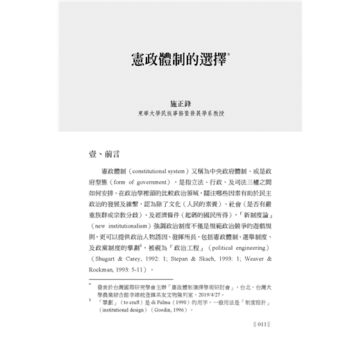 政治制度只是諸多民主化前因之一,其他因素還包含文化、經濟、社會等,必須有通盤的概念架構。除了程序上的民主制度如何獲致以及維持,還有其他實質上的目標,特別是在多元族群的國家,究竟要如何從事民族塑造、甚至於國家締造。那麼,面對複雜的社會組成或是不穩的政治局勢,民選總統或許有其高度,可出面著手社會分歧的整合。