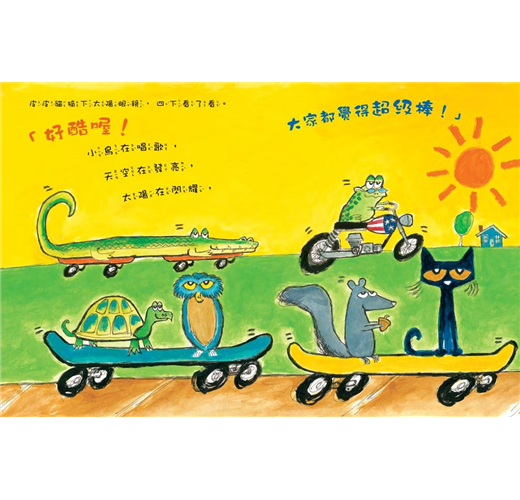 擁有這本書我感到非常興奮!我非常喜歡皮皮貓這系列的書(就像喜歡幼兒園老師一樣)。 孩子們喜歡和我一起邊讀邊唱,因為它是可預測性的故事。讀完這本書後,我的班級對積極態度的重要性,進行了很好的討論。 ——csmc