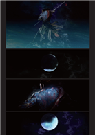 從飛揚的塵土中跳出數條影子。就在這個時候,男子的劍已經把第一個敵人的身體從右向左劈成兩截。屍體倒在塵土中。蟬鳴聲忽然停止。