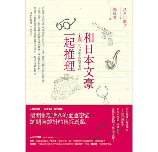 江戶川亂步,建立近代日本偵探小說基礎的巨匠,熱心引介歐美推理小說、評論跟創作推理小說,與松本清張、橫溝正史並稱日本推理文學三大高峰。樂於提攜後進,一九四七年創立偵探作家俱樂部(後來的「日本推理作家協會」),一九五四年設立了「江戶川亂步獎」,迄今超過一甲子。