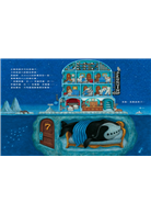 客人陸陸續續來到企鵝旅館,大廳好熱鬧,有二號房的海豹家族、三號房的北極熊親子、四號房看起來很時髦的狐狸先生不停的看著手錶,似乎在等待朋友來會合…企鵝啪噠啪噠四處招呼、非常忙碌。在夕陽餘暉中,深海中的巨無霸鯨魚也來了!要住哪裡呢?原來大海底下還有一間豪華客房。