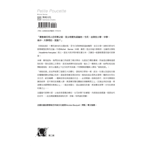《拇指姑娘》一書於2012在法國出版,至今已經銷售超過30萬冊,並且引發一波對於新世代教育構想的熱烈討論。作者Michel Serres(米榭‧塞荷)是史丹福大學教授、法蘭西文學院(Académie française)院士。是在大西洋兩岸都名重士林、又廣受一般讀者喜愛的當代哲學家。