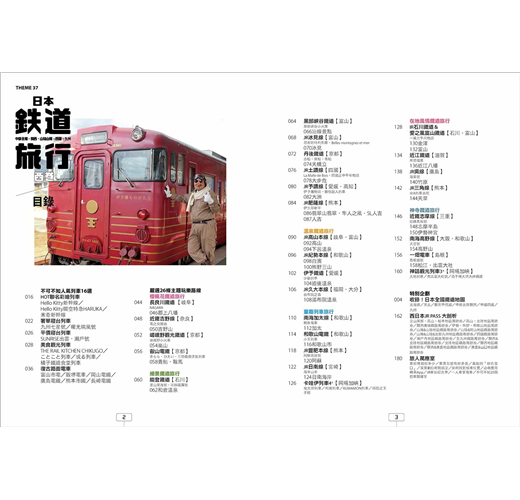 2.主題式介紹特色觀光列車、激推鐵道路線及沿線景點。不論你是賞櫻追楓族、吃貨美食派、擁抱大自然取向、家庭出遊,還是神社寺院控,本書精選6大主題鐵道旅行,提供行程建議,讓旅人可任意拼湊出新風味,全方位滿足各類型需求。