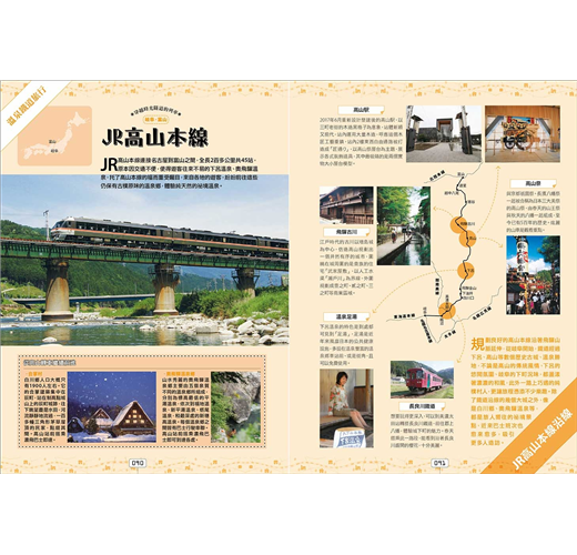 網羅沿線必去景點、經典美食、土產和旅遊資訊,不論是照表操課,還是要任意混搭都方便,人人都能輕鬆安排出獨一無二、令人稱羨的絕佳行程。
