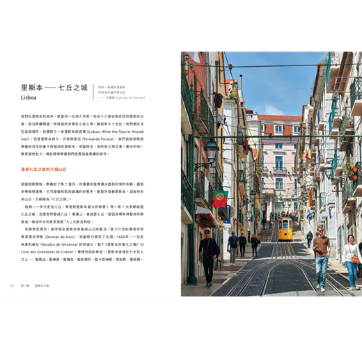 我們在里斯本的旅伴,是當地一位詩人作家,他自十六歲從南非回到里斯本以後,就沒再離開過。他寫過許多異名小說人物,據說有七十五位,他們都生活在這個城市。他還寫了一本里斯本旅遊書《Lisbon, What the Tourist Should See》。他是里斯本詩人,作家佩索亞(Fernando Pessoa),我們這趟旅程就帶著他百年前筆下所描述的里斯本,穿越時空,與所有人物交會。書中的他,像是當地友人,親自開車帶著我們遊歷這座美麗的城市。