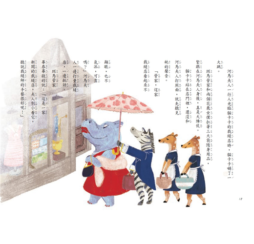 善解人意的貓卡卡不僅心地善良,手中的針線更像是具有魔法一般,替周遭的動物們解決難題、撫慰受傷的心靈。本書收錄兩個短篇:〈河馬夫人的苦惱〉主角河馬夫人是一位強勢的客戶,堅信自己的服裝品味,聽不進裁縫的專業建議。為了參加紫丁香晚宴,河馬夫人找上貓卡卡替她設計新禮服。貓卡卡自開店以來,從未遇過如此棘手的客人,她會如何施展高超手藝、巧妙的收服河馬夫人呢?第二篇〈種衣服〉的主角貓鼬是個充滿謎團的商人,有一天,他帶著奇特的種子來到紅花社區,在大家面前栽種、澆水,聲稱種子會長出衣服!三天後,衣服種出來了,大家把種子搶購一空,掀起一股「種衣服」旋風!貓卡卡的生意受到嚴重打擊,就在她情緒低落的時候,貓鼬竟然走進了貓卡卡的裁縫店……