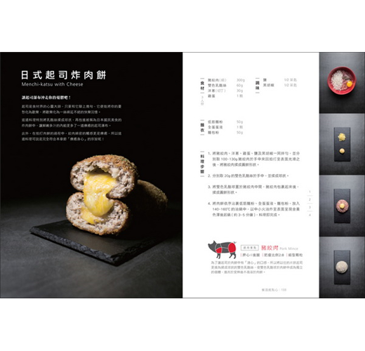 堅持2║「本書限定」的創意料理──樸實豬肉的嶄新變化,顛覆你的感官味蕾從構思、改良、試做到試吃,本書中每道食譜都是由豬肉王子親自研發設計。在自製蛋餃中包入濃濃芝心餡,結合梅花肉和南瓜泥做出濃稠咖哩,用優格加上玉米脆片做出下酒豬米花。讓你熟悉的豬肉不只可以成為傳統飄香的滷肉飯、雪菜肉末,還有更多恍然大悟:「原來豬肉可以這樣吃!」的創新組合。