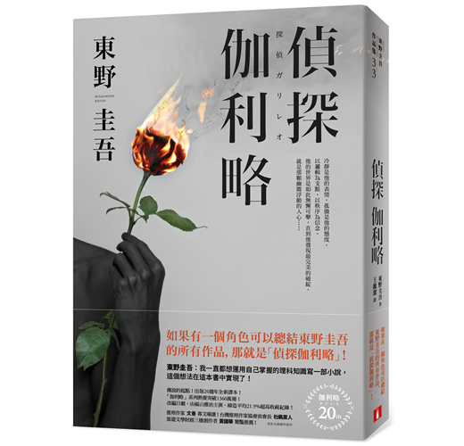 成為暖男之前, 先用理性去看世界 推理作家 文善 要數近年華語地區人氣最高的作家,非東野圭吾莫屬。 《解憂雜貨店》、《嫌疑犯X的獻身》分別被日本和中國大陸改編成電影上映,《祕密》和《白夜行》也分別在日本和韓國多次被映像化,其他如《新參者》、《紅色手指》、《信》等,都是大家耳熟能詳的作品。大眾讀者都驚嘆他作品中對人性細緻的描寫,小說中的議題和角色們的互動就像一支緊湊曼妙的舞,帶來一種特別的溫度。 然而有些讀者也許不知道,在這溫度的背後,走過的是一段理智和計算的漫漫長路。 在大阪府立大學工學院畢業前,東野圭吾自知成績考不上「老奶奶也知道的企業」,於是早早下決心找不是一線大企業、但仍具規模的公司,還巧妙地擊退了競爭對手拿到推薦。 一九八五年,憑《放學後》拿到江戶川亂步獎後,讓他決定辭職到東京當作家的,是「現金流分析」──《放學後》賣了十萬本,假設以後的作品有十分之一的銷量,每年寫三本的話版稅收入就和當時的薪水差不多。這連本來想責備他魯莽辭職的編輯也不禁無言。 之後十年,東野圭吾不但是個多產的作家,也在小說中嘗試了很多不同的題材。可是歸根究柢,是他沒有大紅大紫,他也在後來的訪談中坦言,為了生活,只有持續地寫,就能一直有版稅收入,也不會被讀者和出版界遺忘。 這種計算,也可見於《偵探伽利略》。 雖然這是他「一直想以理科知識寫小說」的實踐,但這部作品並不是複雜物理詭計的本格推理,而是帶有理科趣味的短篇小說──也是後來在電視上被福山雅治演活而家傳戶曉的角色──湯川學的登場作。 《偵探伽利略》結集了東野圭吾在小說雜誌《ALL讀物》的五篇短篇。首作〈燃燒〉發表於一九九六年十一月號,〈複製〉刊於一九九七年三月號,〈壞死〉在一九九七年六月號,〈爆炸〉在一九九七年十月號,〈出竅〉於一九九八年三月號,並在一九九八年由文藝春秋結集出版。 《ALL讀物》是文藝春秋出版的娛樂小說雜誌,算不上文學而是消閒小說。首發〈燃燒〉的主題,是勘稱現代不思議之謎的「人體自燃」(spontaneous human combustion)。東野圭吾透過湯川學這位喝即溶咖啡、對人總是一副冷冷的態度、除了研究對其他事都不大感興趣的物理學副教授,漂亮地以科學原理解開了謎團。之後幾篇也是以科學知識,解決了看似不可思議的離奇案件。由於是刊載於娛樂向的小說雜誌,謎團簡單但又不失趣味,篇幅不長但卻把湯川學的性格立體地呈現在讀者面前。 這個始於理性的系列,卻又發展成衝擊讀者感性的作品:《嫌疑犯X的獻身》圍繞最極致的愛;在〈燃燒〉中不能向小孩問話的湯川學,在《真夏方程式》裡卻和小孩有一段感人的忘年之交。 從《偵探伽利略》於一九九八年出版至今,理性的湯川學也展現了暖男的一面;而東野圭吾,以他理科的視野寫下人性的種種,成為了連老奶奶也知道的作家。
