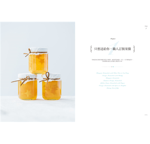 ◣收錄獨家首創「璀璨星星果凝」,全台首款果醬創新做法,在清透的果醬中閃耀著一顆顆星星,炫目美麗而又難以言喻的美味,你一定要試試看。