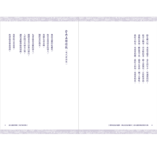 此情詩收錄五言古體、現代白話兩種藏文翻譯版本,以及倉央嘉措生平、明清活佛年譜等珍貴資料。