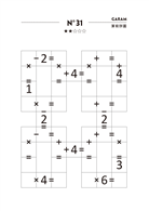 GARAM算術拼圖每一道題雖只有四十個空格,也都只有數字1~9需填入,但結合運算子+、-、×和隱藏的÷之後,會形成環環相扣的邏輯要求,這可是需要孩子定下心,細膩的觀察和思考推敲才能完成喔!有趣的一點是,當我的女兒專心做著《GARAM神奇的算術拼圖》時,會突然喊一聲「YA!我猜中了!」這種破解謎題的快感,更是這本書所帶來的驚喜!