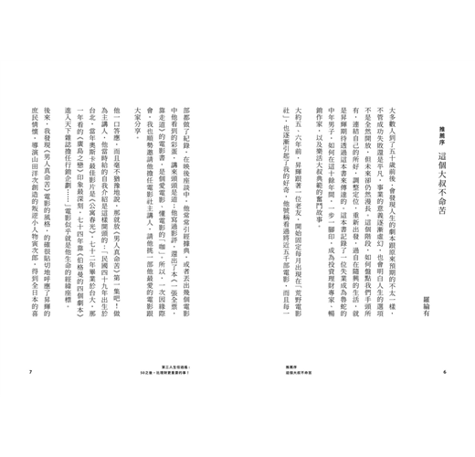 他一口答應,而且毫不猶豫地說,那就放《男人真命苦》第一集吧! 做為主講人,他當時給的自我介紹是這樣開頭的:「民國四十九年出生於台北,當年奧斯卡最佳影片是《公寓春光》,七十二年畢業於台大,那一年看的《廣島之戀》印象最深刻,七十四年靠《伯格曼的四個劇本》進入天下雜誌擔任行銷企劃……」電影似乎就是他生命的經緯座標。