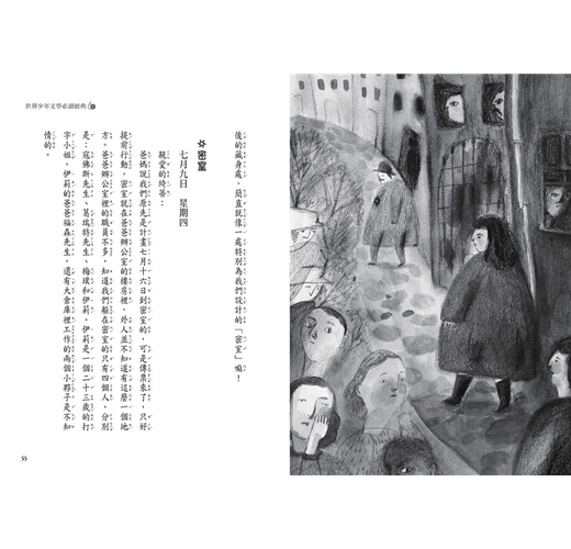這是一個猶太女孩安妮十三歲到十五歲的真實紀錄。德國納粹黨領袖希特勒執政後,大肆屠殺猶太人。安妮一家在父親朋友的協助下遷居荷蘭,躲避在閣樓裡,每天寫下她的心情。