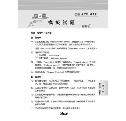 專業科目B 管理學、經...