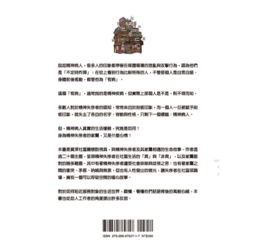 作者將他訪視的所見所聞,透過二十個主題,呈現精神失序者在社區生活的「異」與「非異」,以及家屬面對的諸多難題。