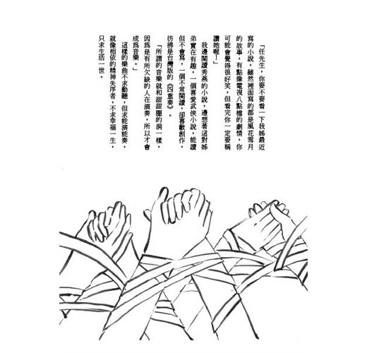 在本書中,作者也以簡短精要的歷史,考察日治時期到今日,相關政策的演變,道出社區關懷員這類「非典型專業工作者」的歷史由來與職業特色。或許不光是作者自述「邊界混種雜生」的身分,而是這類帶有殖民性格,向國家靠攏的社區照護,讓作者感受到相當程度的不自在。然而也因為如此,使得作者得以成為一介「易受傷的觀察者」,在以圍繞「受苦」為主題的場域中,開展出與案主互為主體的書寫,成為本書的特殊風格,從而能帶領讀者以更貼近主體經驗的角度來認識精神疾病。