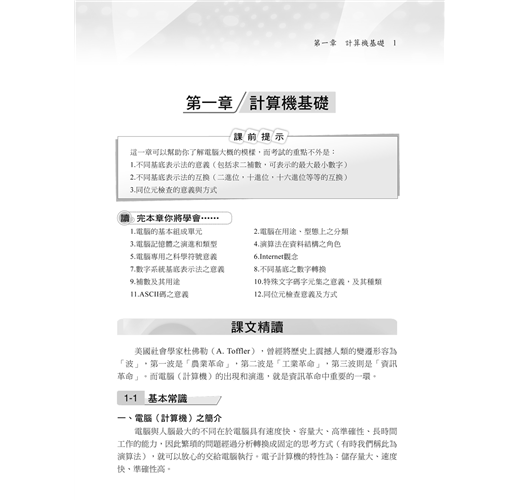 為因應各種考試,特別將計算機概論中的重要觀念及必考內容加以濃縮整理,輔以精選題庫,期能有事半功倍的成果。課文部份將考試重點的基本概念以提綱挈領、淺顯易懂的方式條列呈現,並於各章最前面特別編寫「課前提示」,提醒本章重點觀念,完整建立重點內容架構,易於學習及記憶背誦,掌握正確準備方向。
