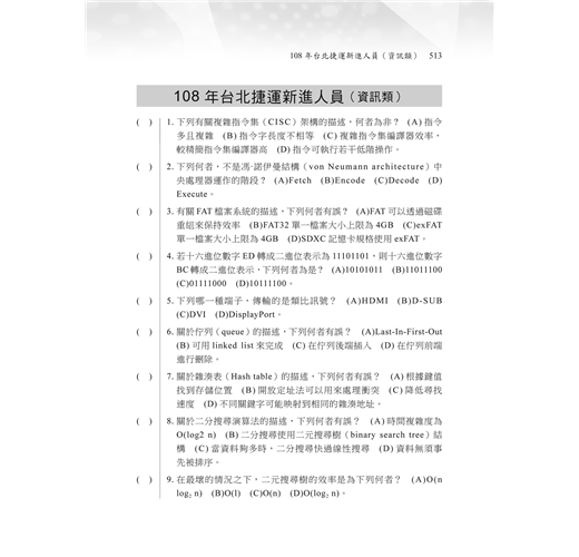 書末收錄試題及解析,保證時效最新、解析最精、收錄最全,歷年試題的統整,利於掌握考試最新脈動與命題方向。本書將104~108年試題一網打盡,毫不保留,經過名師詳解,類似的題目再出個一百次,也不害怕!輕鬆學習、快速理解,掌握命題趨勢,必定能在考場所向披靡!