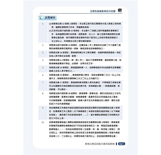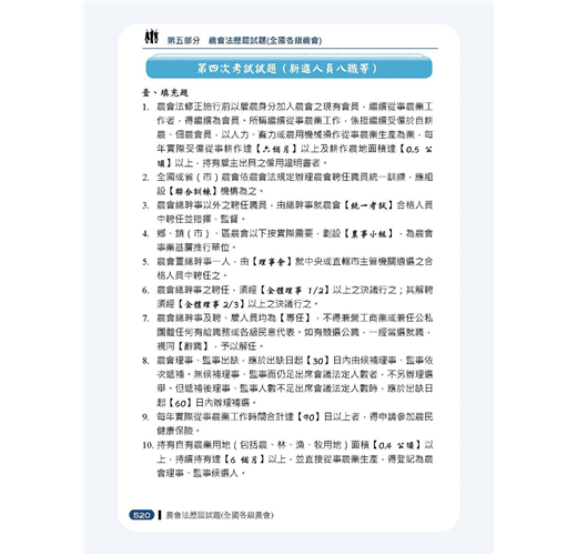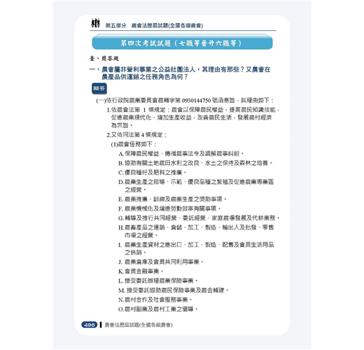 農會法及其施行細則絕對是農會招考最重要、必須要拿高分的科目。農會法及其施行細則繁瑣,本書著重各法條的重點串聯,利於考生理解條文內容,深刻記憶。多做試題是抓到考試重點的不二法門,本書剖析考點、擷取精選考題,並蒐錄全國各級農會農會法歷次至今共50份歷屆考題(含臺灣省各級農會時期),只要善用考古題,充分練習,就可輕鬆搞定農會法。