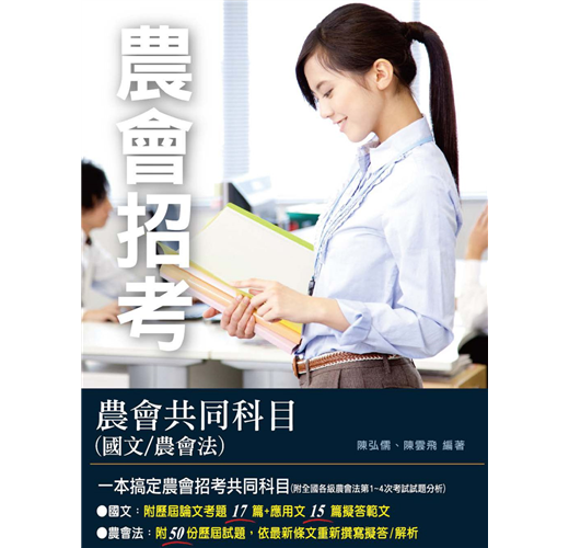 農會招考不分類科,必考國文與農會法!《農會共同科目(國文/農會法)》由三民輔考權威名師依最新考試命題編寫而成,共同兩科,一本搞定!本書分為五大部分:論文、應用文(公文)、農會法重點整理及精選試題、臺灣省各級農會農會法歷屆試題以及全國各級農會農會法歷屆試題。只要好好掌握共同科目,上榜機率勢必大增!