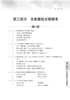 第三部分為全範圍綜合模擬考,主要取材自各校歷屆試題當中最重要、最具代表性之試題、並加強考試範圍之重點試題,期藉由全範圍綜合模擬考及逐題解析,加深對於本科目之熟悉度與應試經驗。