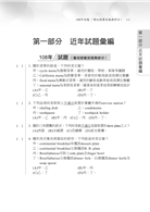 綜合而言,此書之編寫旨在藉由主題式題庫演練之歸納與整理、進階試題演練之習作以及全範圍綜合模擬考,建立系統性的知識並熟悉試題之型態,從而舉一反三、融會貫通。盼能於來年的考試當中贏得全勝,並預祝各位考生金榜題名。