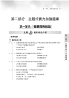 第二部分為主題式實力加強題庫,針對「餐旅服務」一科,根據考試範圍,針對精華試題,編列經典範題及解析。盼透過各類重點考題、題庫之匯整與逐題解析,可以從題目之演練中,熟知考試趨向與題型;並於經典範題及解析之後,更進一步針對各類考試重點,提供變化題、延伸題、綜合題型等之進階試題演練,以藉由淺而深的試題演練與解析,得收融會貫通、打通任督二脈之效。