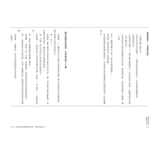 你媽媽:(一邊看比利時兒童心理學家寫的書)書上說他現在正在發展期,腦子會專注在特定的能力上。