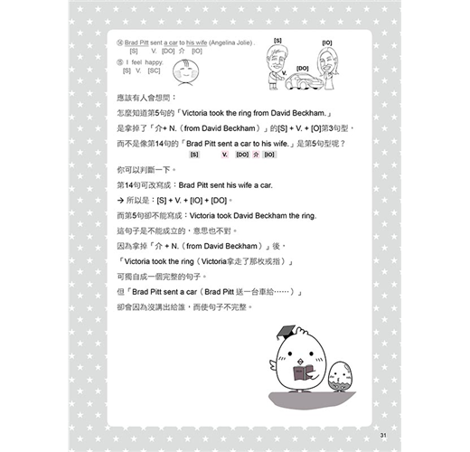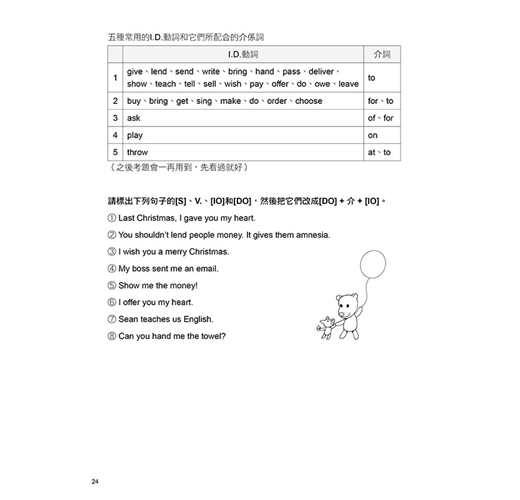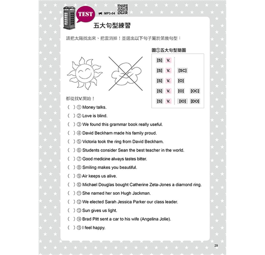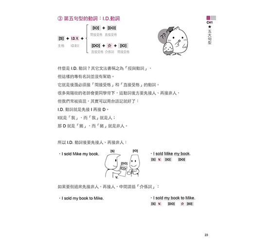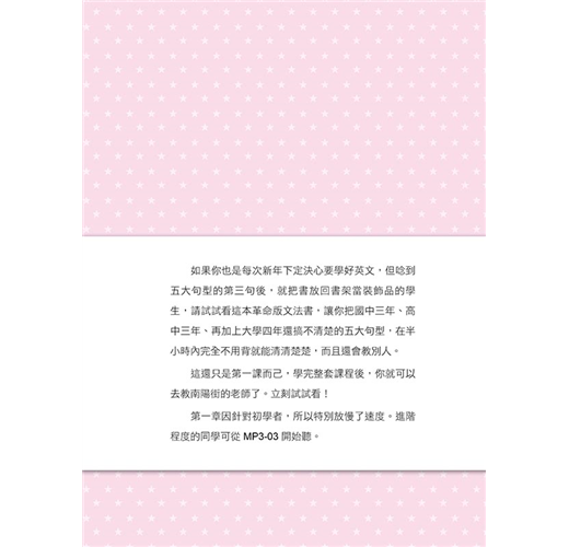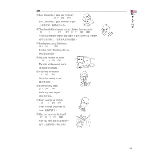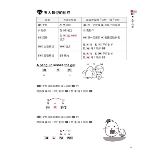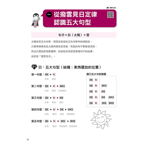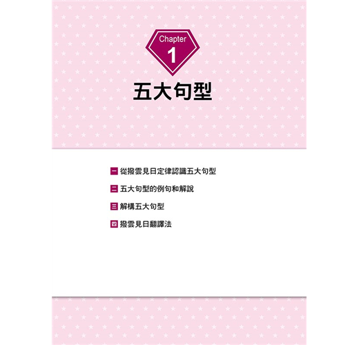 本書首先打穩基礎,認識英文五大句型的構造,並詳細說明構成元素,再循序漸進學習每個元素的功能、及組成句型的來由,除了讓讀者能按部就班地學習,更重要的是,本書也同時兼顧了讀者在參加各類考試、英文檢定時,必須具備的英文文法能力,讀完本書後,既可透徹理解英文文法,也能在考試檢定中如魚得水!