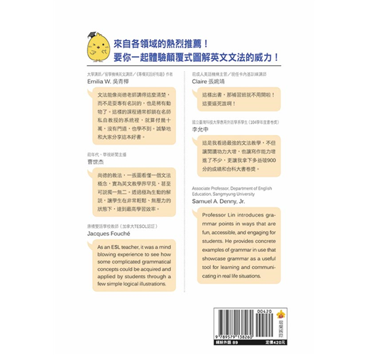 In this text, however, Professor Sean Lin of National Taipei University of Technology introduces grammar points in ways that are fun, accessible, and engaging for students. He provides concrete examples of grammar in use that showcase grammar as a useful tool for learning and communicating in real life situations rather than as a fearful obstacle to be overcome. With this non-threatening approach, students can be encouraged to view grammar acquisition as merely a useful springboard for their further language development.