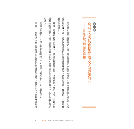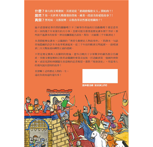 本書搭配歷史課本,以獨創的「異常生動歷史人物故事串」,將課本一句話背後隱藏的許許多多故事相連起來。從三千年前的歐洲文明起源,一路相連到二次大戰後迎向轉型正義的德國。