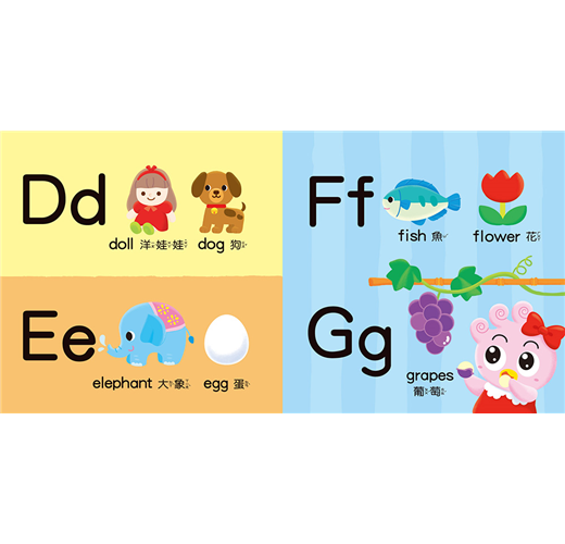 ★認識英文字母:看圖從生活中學習英文,讓孩子跟著念一念,提早建立外文基礎,增加學習的自信心。