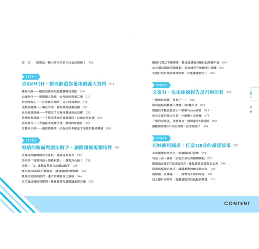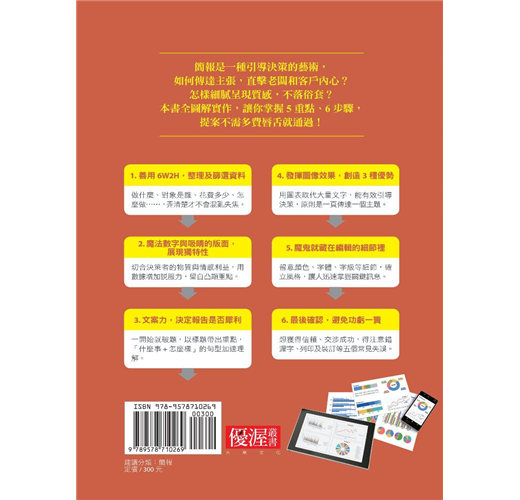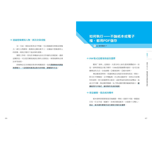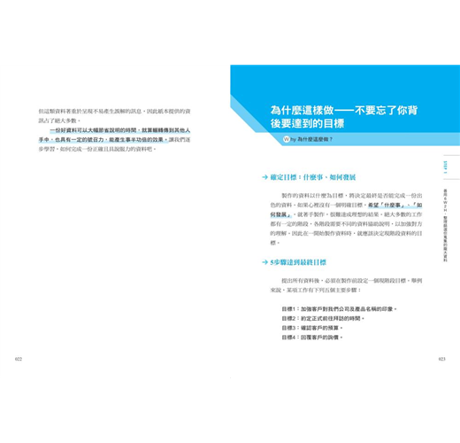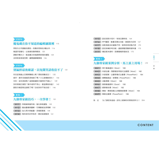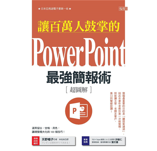 另外,本書更提供9個專家級技巧,不管是做投影片還是書面資料,都能事半功倍。而且,搭配9個實作案例,從預算報告、內外部提案到媒體新聞稿等,馬上能派上用場。