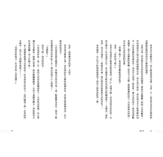 某君不知道為什麼最近經常想到「死亡」這個字眼。這也是很自然的吧,自從父親在三年前過世之后,比父親更年輕的叔叔們也陸續過世了;父親這一輩的叔叔、伯父全過世了。照輩份年歲,他已經是家庭裏最年長的男性了。突然覺得,自己冷不防地就被推到了和死亡面對面的第一線。