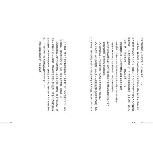 誰也沒有死過,但為什麼那地理師卻說得如此斬釘截鐵,好似自己親身經歷過一般:「人在臨死的時候會看到光,亮到睜不開眼的光,不,不是看到,是感覺到光,像在電影院,播放中影片亂碼了,紊亂失序的影片,一個接一個的畫面,以快到難以想像的速度從腦海中掠過,全是你一輩子經歷過,看過的畫面,快如閃電,但每一個畫面,你都會看得清清楚楚……。」