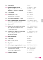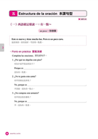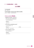為了達到輕鬆、直覺學習西語的目的,作者也將書內的解說文字,減至最低,並以大量的實戰演練代替。力求不被文法綑綁思緒,將注意力放在如何用西語表達上,希望讓你達到真正像母語人士般運用自如的境界。例: