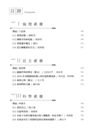 三、 本書篇章分倫理、民主、科學、美學、媒體、環境等六大素養,各大素養包含三至四篇選文,並以導論總括對應之素養內容。每篇選文,含有正文、閱讀錦囊(作者、題解、賞析)、練功坊(活動與討論)。
