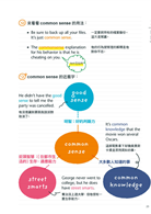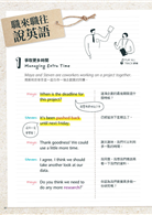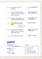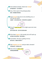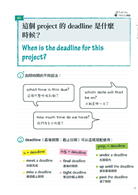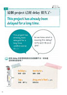 此外,在中英夾雜的句子中,有時也會有英文誤用的情況。舉例來說,「下一個season,我們公司要開始cost down了。」這句話中的season和cost down其實都是錯誤用法,正確說法為Next quarter, our company will start to reduce costs。另一種情況是詞性或語態錯誤,像是「我的火車delay了」英文要用被動My train is delayed. 等。本書中有許多這樣的句子,希望可以藉此幫你掌握正確的英文語法。