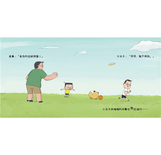 小兒子一家帶著小狗端端開心地到戶外野餐、玩耍,父子三人聊起端端的優缺點,有時聰明、貼心,有時煩人、搞破壞,無論如何,牠都是重要的家庭成員。我們可以從中體會寵物對家庭的凝聚力,加深了彼此情感的交流。閒聊中,很自然地發現因為年紀、閱歷的不同,看世界的視角也不同,對同一件事的感受便有差異,所以要練習用開放的角度觀察世界,樂觀面對生命中的難題,認識並接納人與人之間的不同。--蘇麗媚